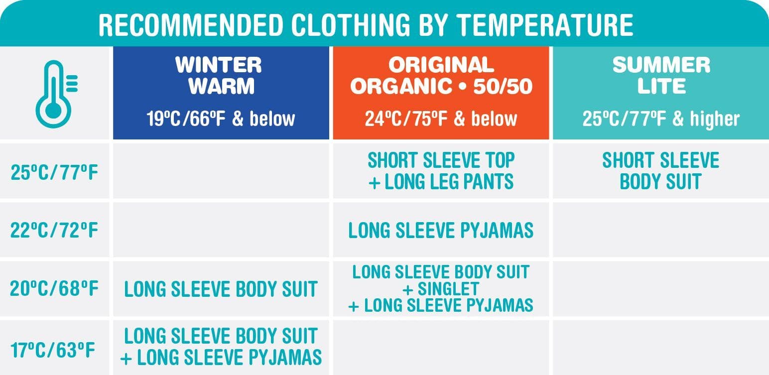 The standard 50/50 Swaddle Up is 93% Cotton and 7% Elastane, while the bamboo version is ultra breathable and naturally moisture-wicking bamboo viscose.